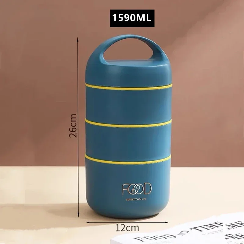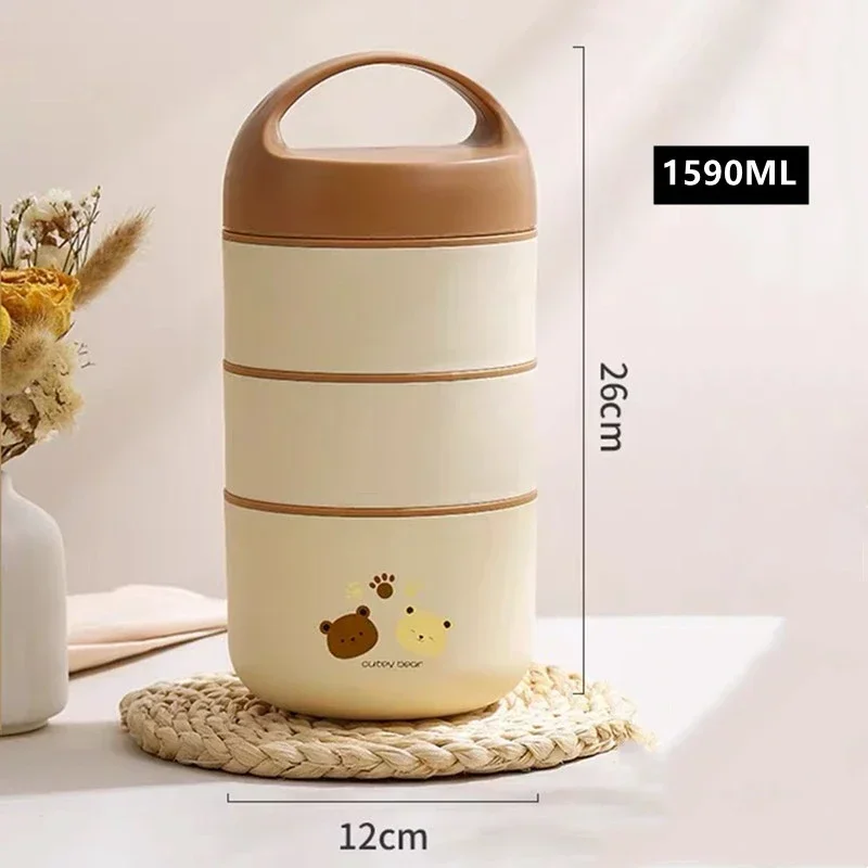 1240ML/1590ML Large Capacity Stainless Steel 304 Lunch Box Leak-Proof Multi layer Thermal Bento Box Adult Student Food Container