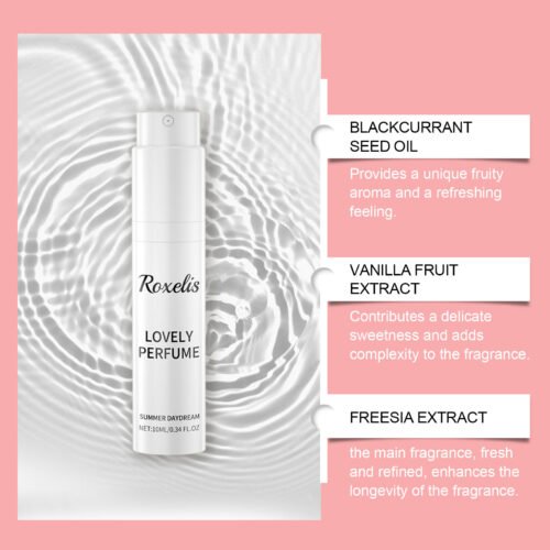 Our rotating perfume spray contains freesia extract and rose oil. It can add vitality and charm. Its use method is very simple: take a proper amount of this product, evenly spray on the wrists, behind the ears, neck and other places that need fragrance. And can provide a unique fruity and refreshing feeling.