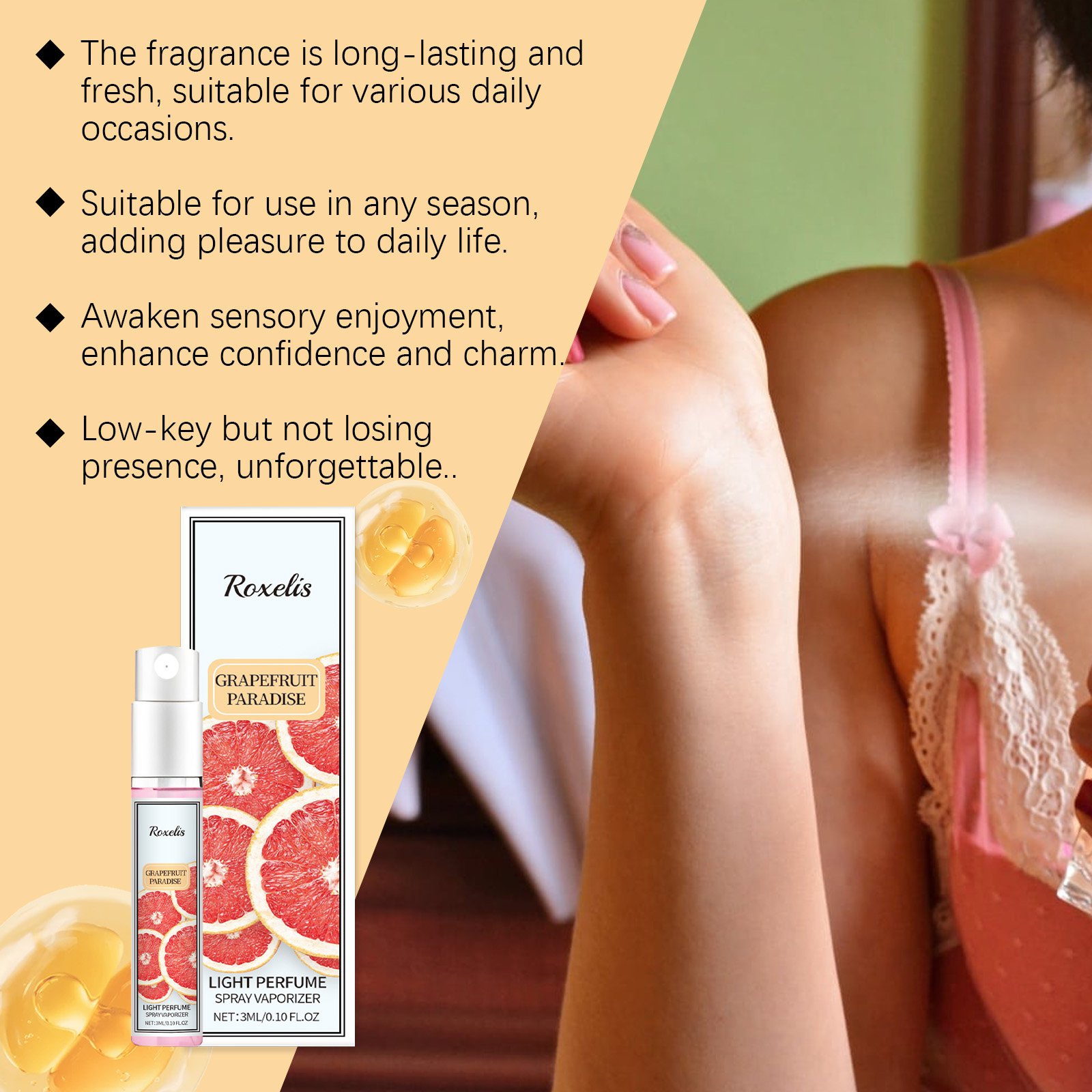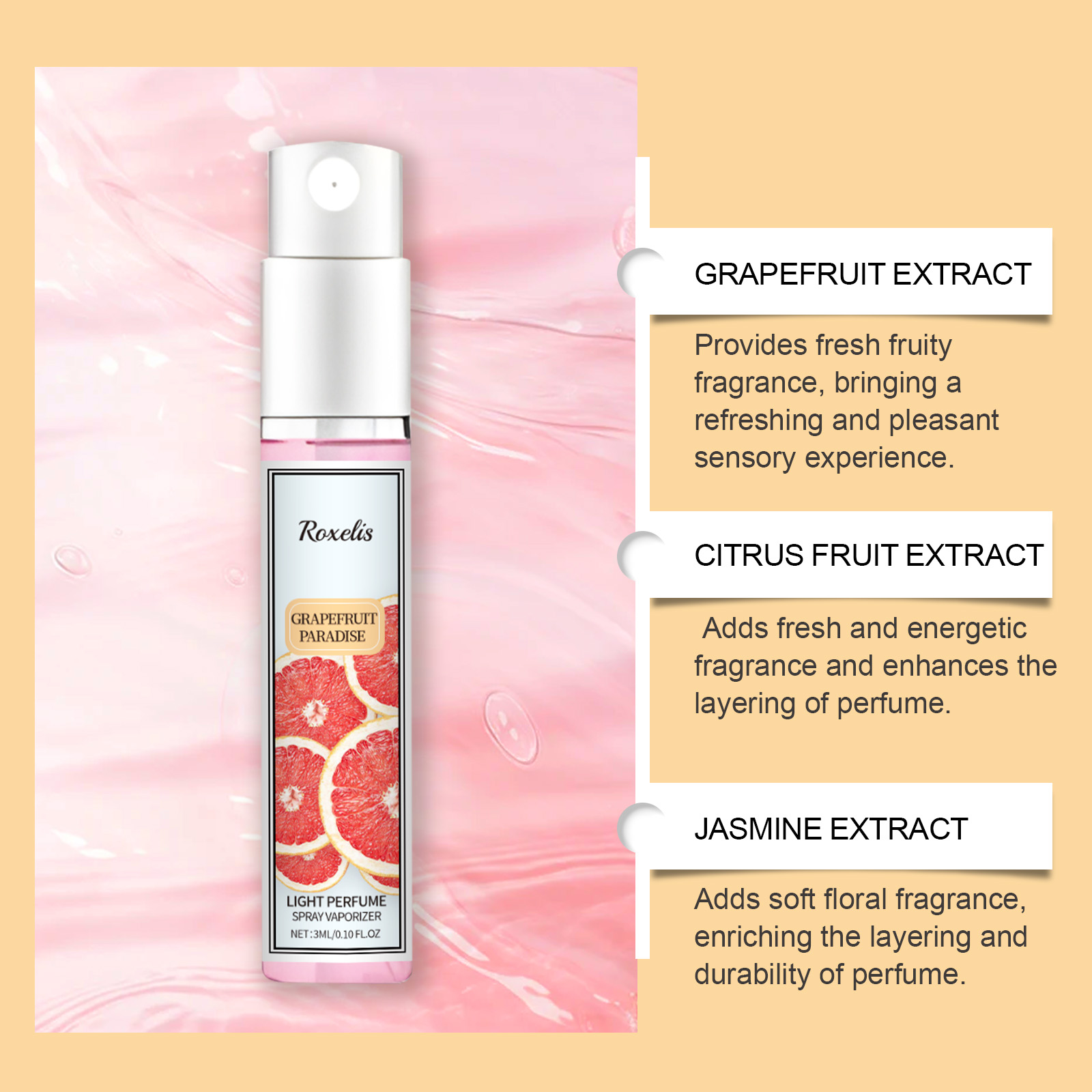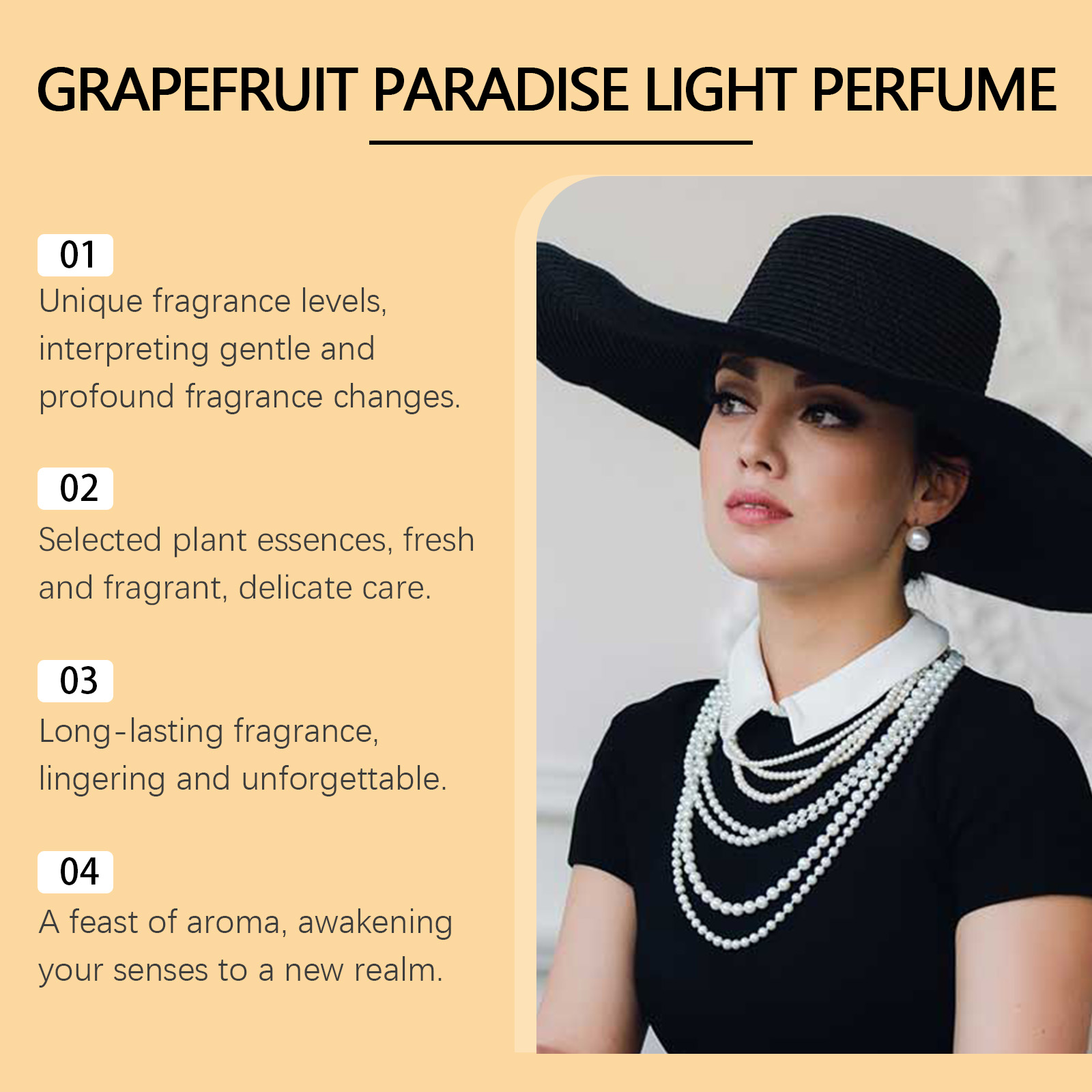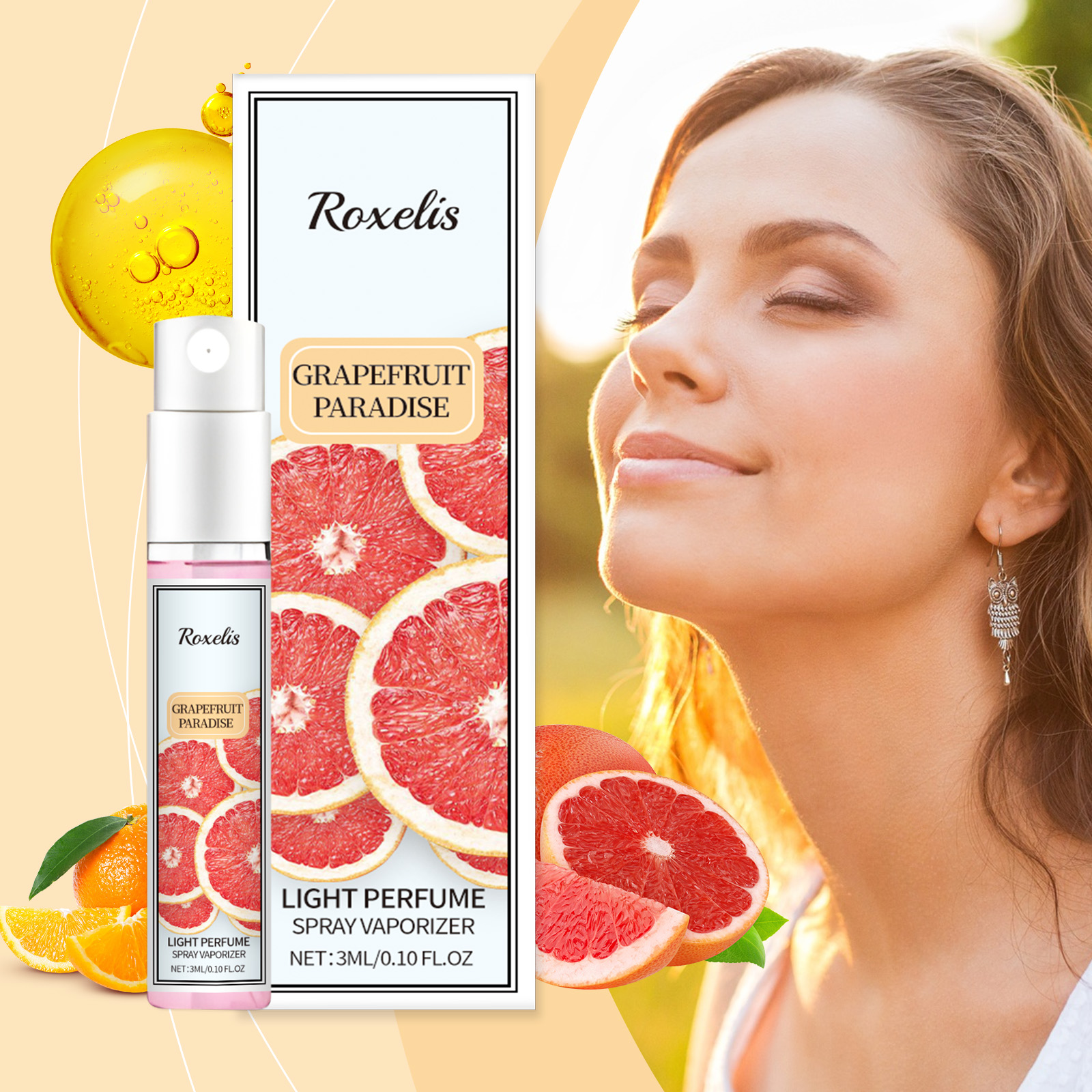 Our grapefruit perfume spray contains grapefruit extract, citrus fruit extract, jasmine extract. It can provide fresh fruit aroma for a refreshing and pleasant sensory experience. Add a fresh and vibrant scent and enhance the layer of perfume. Its use is very simple: spray the perfume on the wrists, neck, behind the ears and other parts, you can also spray the perfume in the air, and then walk into the fog, so that the perfume evenly spread throughout the body, leaving a strong aroma. The fresh fragrance brings a vibrant sensory experience and enhances personal charm. Top note of fresh citrus. Soft floral notes in the middle. The finish is warm and long-lasting, with a strong aroma.