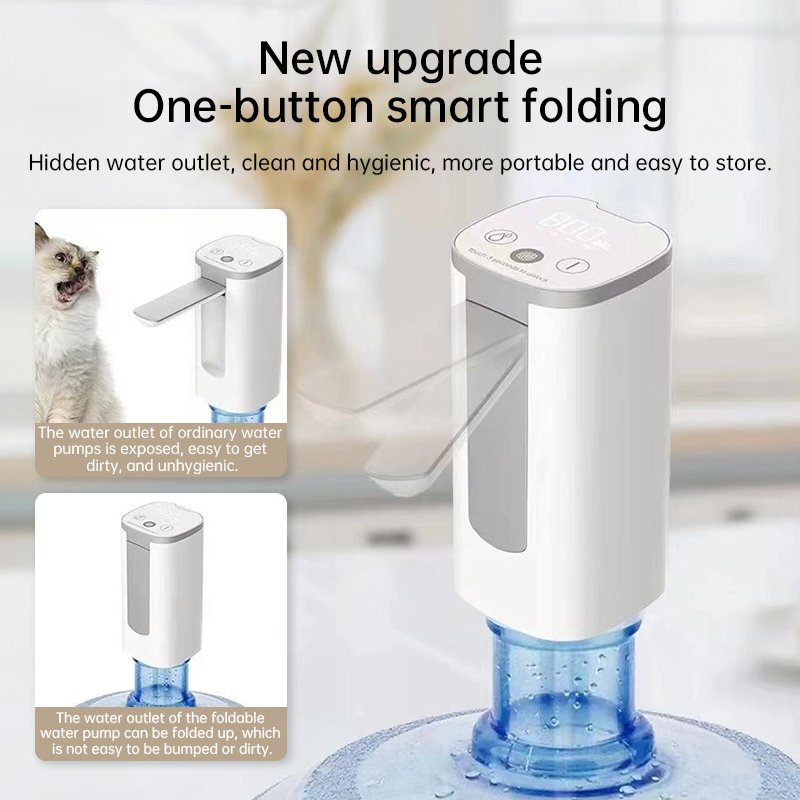 1. Quantitative folding type, touch screen control + three-gear quantitative water output + power reminder + intelligent lifting water outlet.